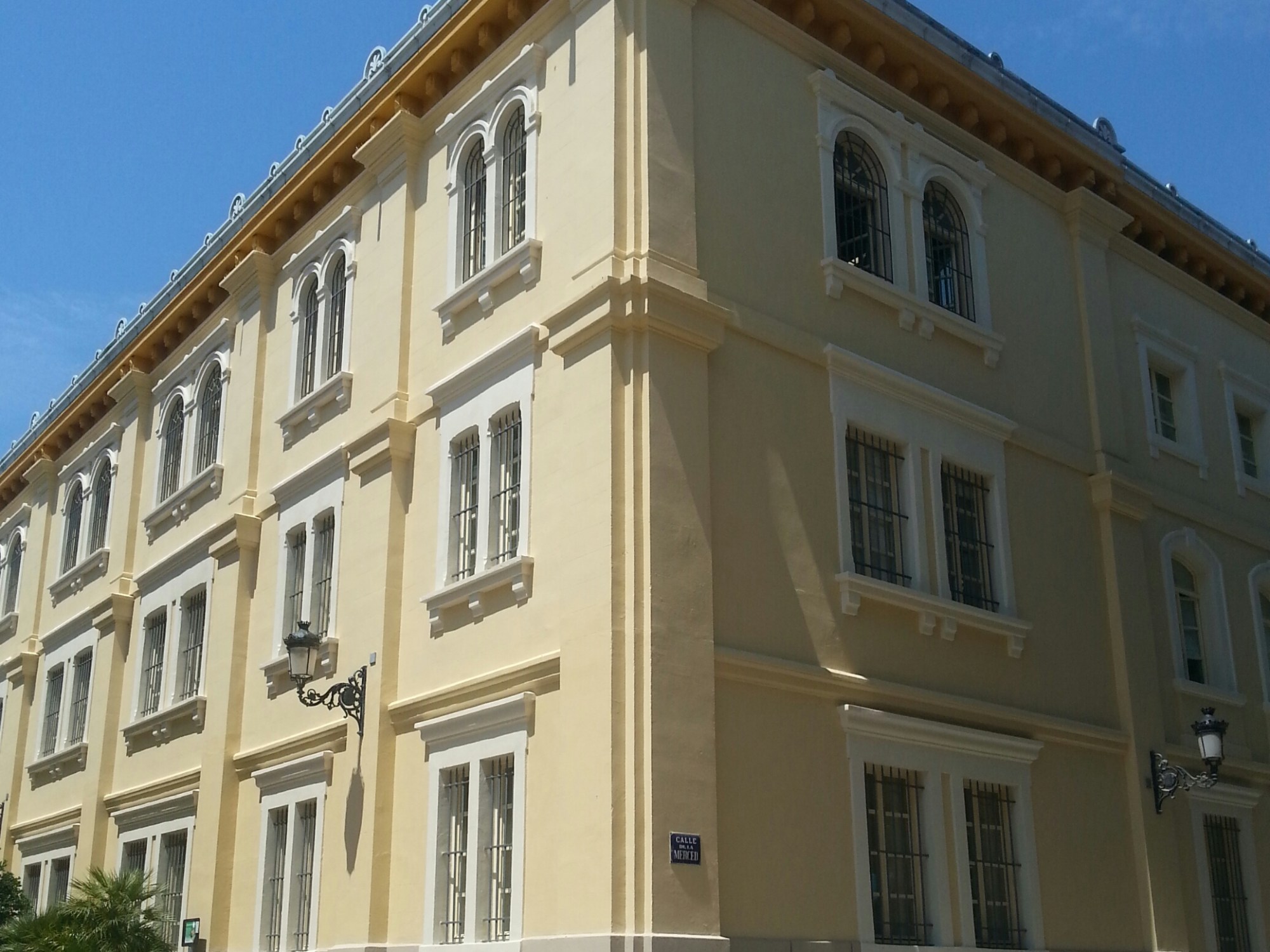 En esta obra se procedió al levantado de la cubierta, ya que por su estado de deterioro estaba dañando con humedades varias salas del edificio. Tras la sustitución del canalón por uno nuevo de zinc, se procedió a reparar todos los elementos decorativos. Las cornisas fueron limpiadas, restauradas y reconstruidas en aquellas partes que era necesario, utilizando para ello productos específicos como el mortero del tipo Sicatop 10.